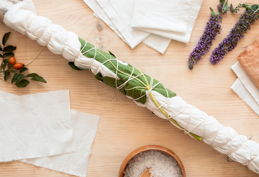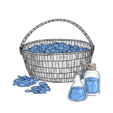 採集成熟的藍染植物(例如:馬藍、蓼藍等),並進行初步的處理,如清洗、陰乾或發酵等,以提取藍色染料。