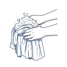待布料達到理想的藍色後,進行充分的水洗,去除多餘的染料和助劑。之後可進行解開綁紮、晾乾、整燙等後處理。