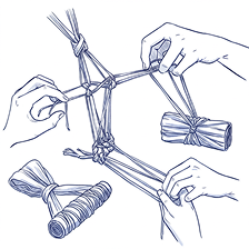 根據設計需求,使用繩子、夾子、縫線等工具在布料上進行綁紮或縫製,形成防染區域,創造出獨特的圖案。