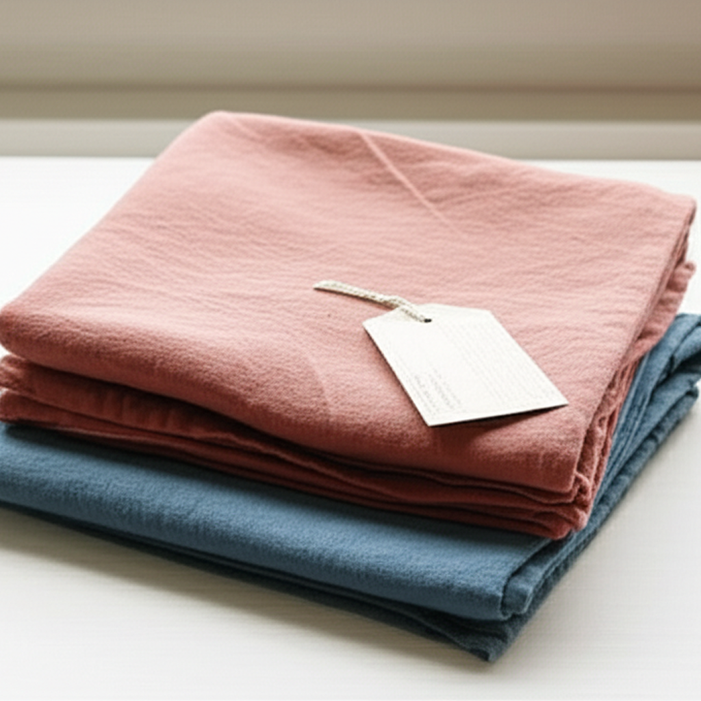 以自然植物「桃花心木」反覆浸染,呈現如山中霧靄般的層次。圍巾邊緣為手工抽縫收尾,質地輕柔,適合四季搭配。每件皆為手作染布,色澤與紋理皆略有不同,是自然與時間交織的痕跡。